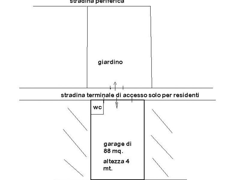 Via Duca Giordano, nella stradina adiacente: Ampio garage di c.a. 88 mq. unico vano con soffitto alto ad arco e servizio. Fa parte della vendita il giardinetto oltre la stradella di c.a. 100 mq. Adiacente il centro storico, ottimo anche per creazione di un loft o lasciarlo così com'è, magazzino-garage destinazione attuale.